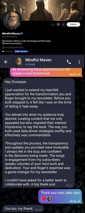 All emails will be written in your voice, taking content from coaching and best performing posts on social media.So you have nothing to worry about, I'll just talk about the things you've already covered.